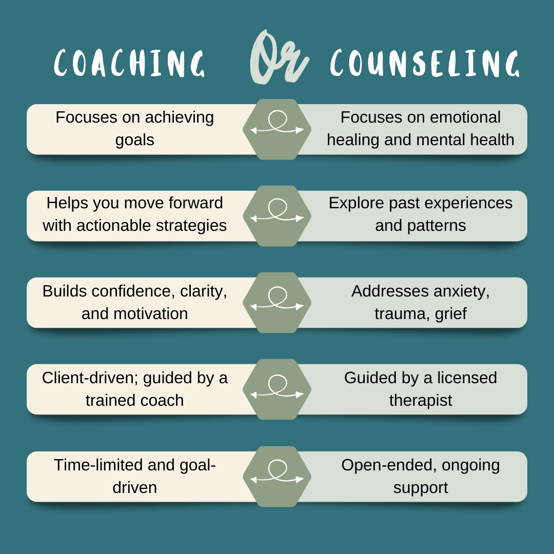 If you’re navigating a personal or professional challenge, choosing between a counselor and a coach can feel overwhelming. Understanding the key differences can help you determine which option is right for you.